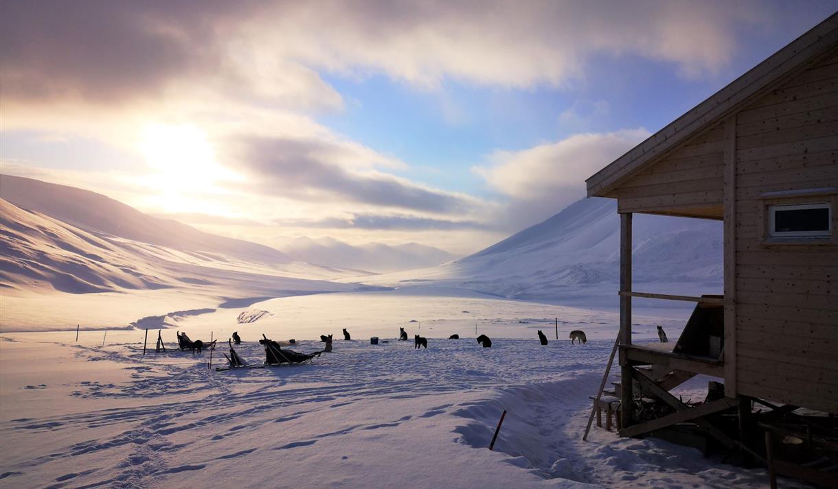 Visit our idyllic lodge in the untouched and silent Tverrdalen. The only way to get there is by foot, skiing or dog sledding since motorized transportation is not allowed here. This trip provides a very special opportunity to experience the Svalbard wilderness in all its splendor with the help of our furry four-legged friends.