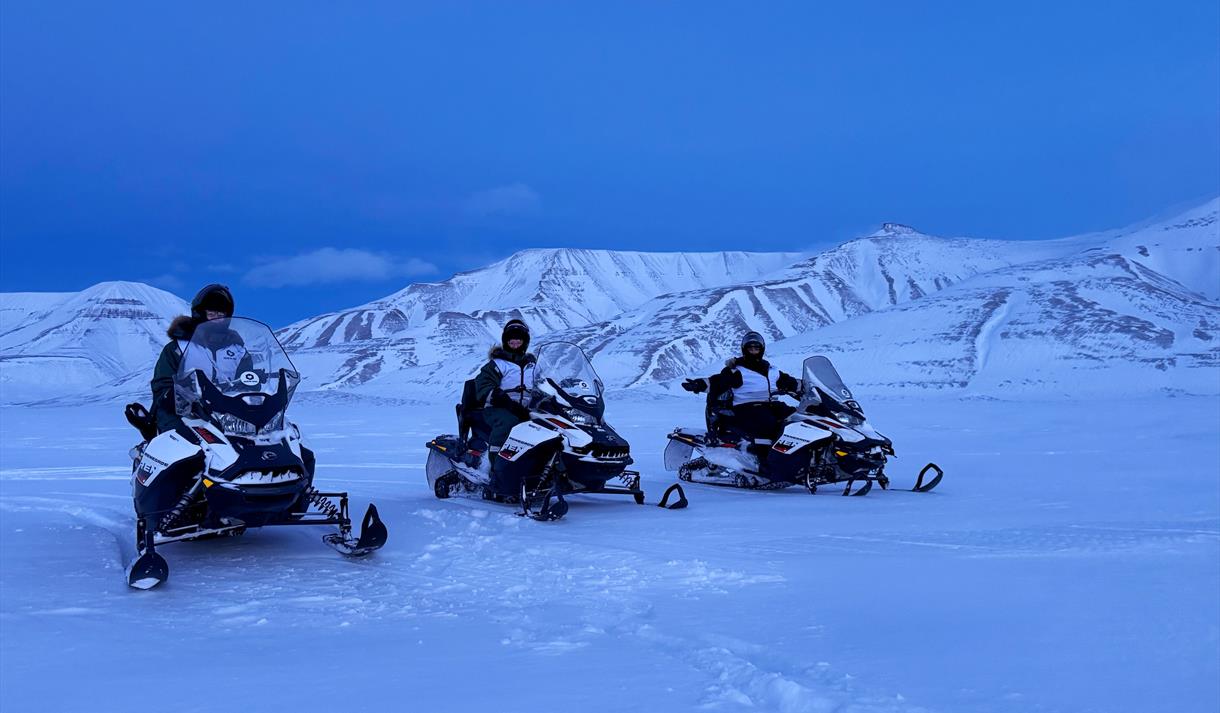 We will drive our snowmobiles through the huge valley of Adventdalen and be on the lookout for possible wildlife such as the Svalbard reindeer. When we reach the Pingo, our guide will explain you more about this interesting periglacial landform, whilst we enjoy our hot drinks and sweets.
