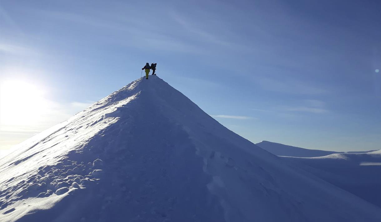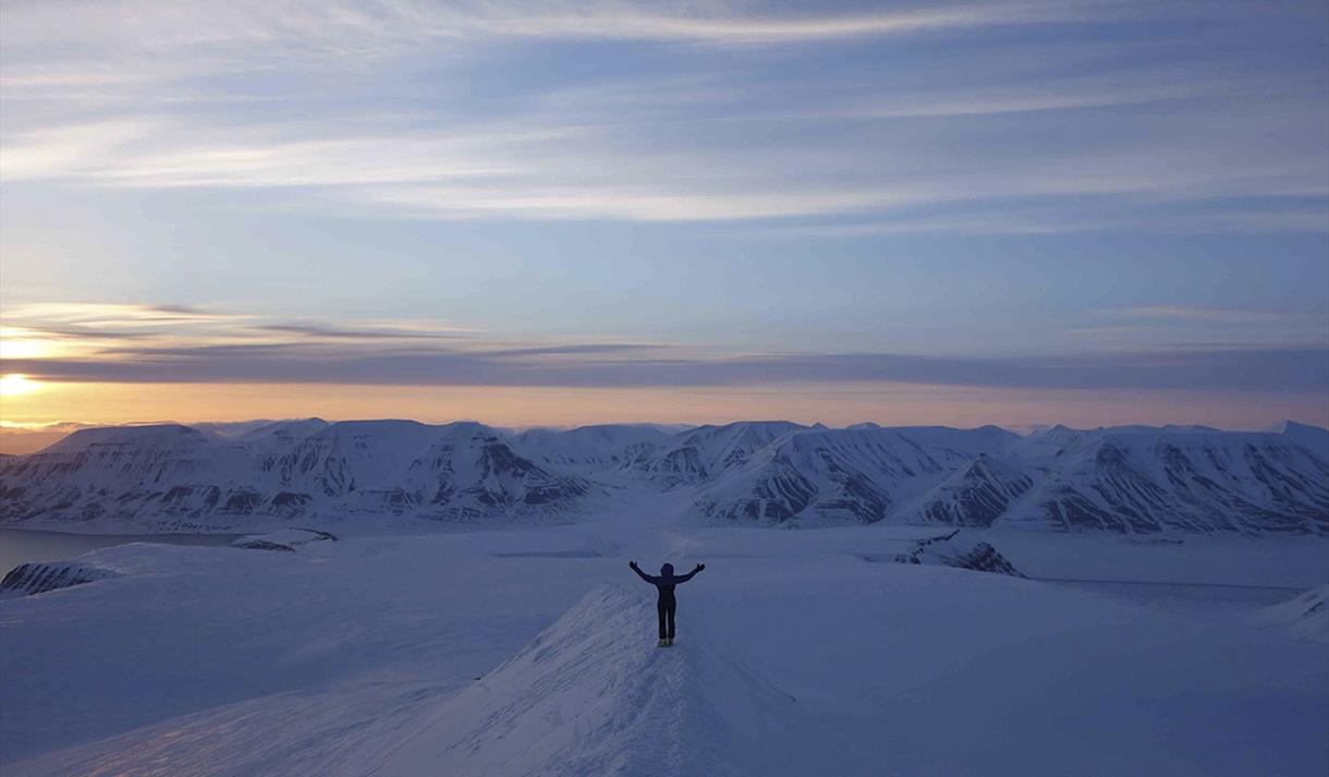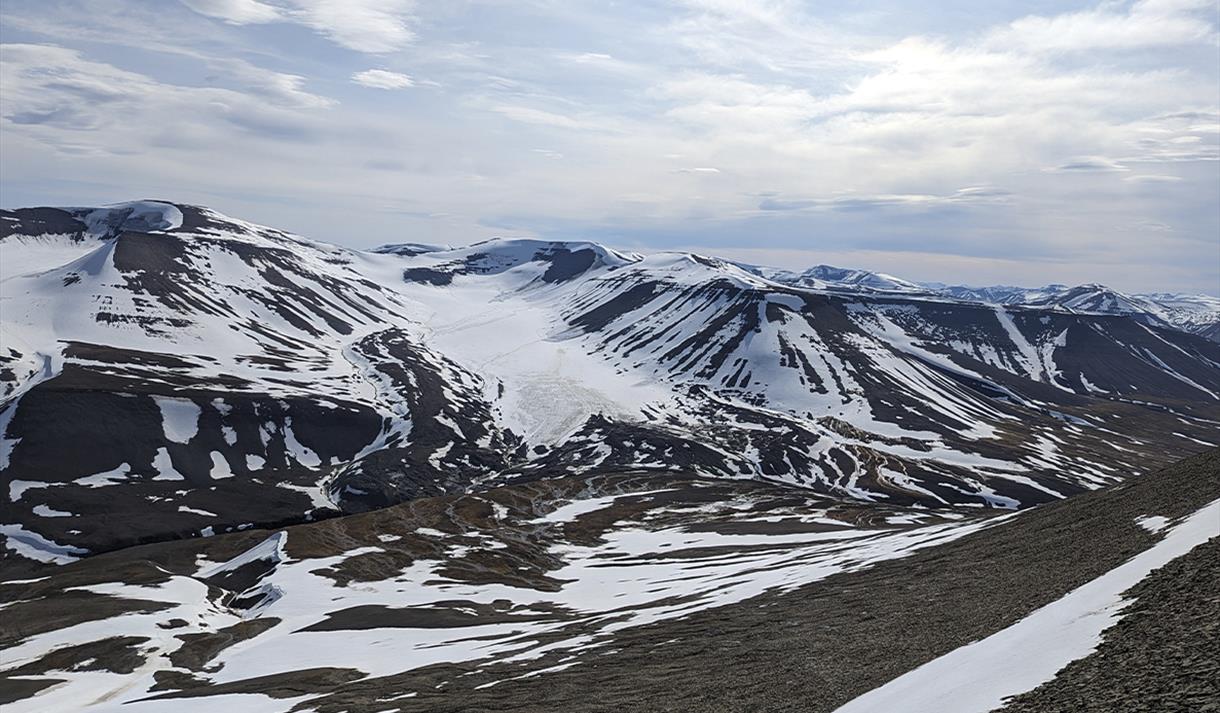 The trip starts with a hike in a moraine landscape before we cross Larsbreen towards the foot of the mountain. We take several small breaks along the way to enjoy the view - the guide finds the right time and place for lunch. The silence is magical up here, so bring a camera, binoculars, a warm sweater for the breaks and drinking water is smart if you get thirsty.