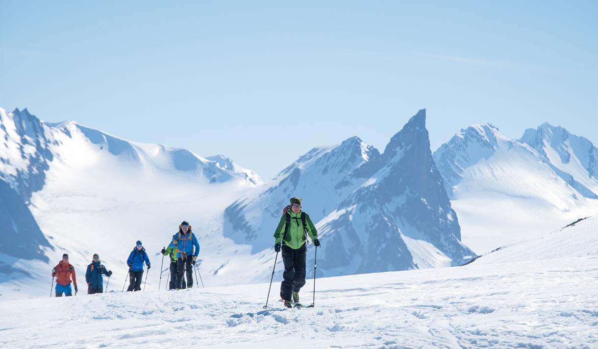 From April the midnight sun bathes the landscape in continuous daylight, ideal for those who want to enjoy a night-time ski tour under a sunlit sky.