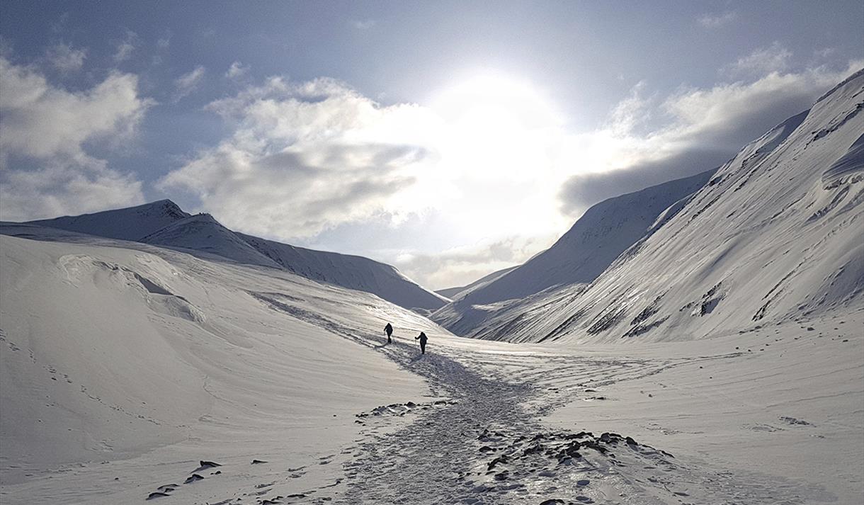 We will be rewarded with a great view of Adventfjorden and its surrounding majestic mountains. Mine 3 can also be seen from the summit, and the remains of the coal mining period.