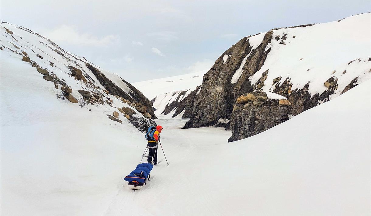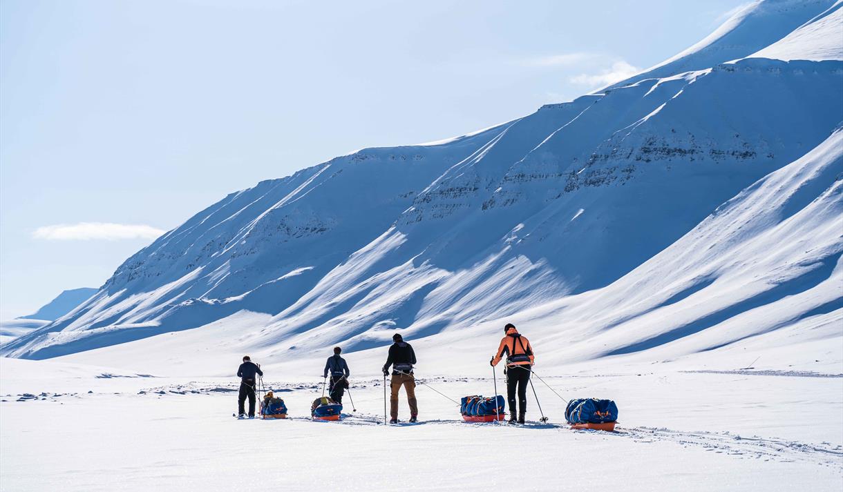 With your pulka gliding behind you, you'll travel at a calm and steady pace through Svalbard’s untouched landscapes