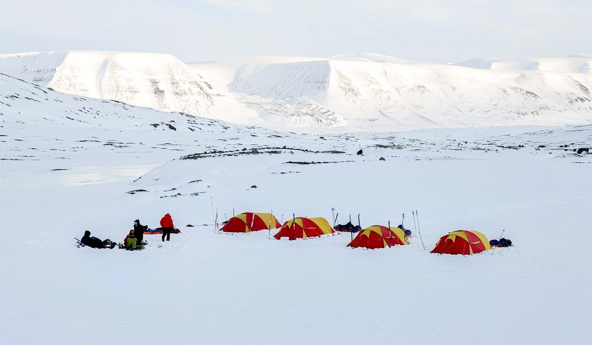 After lunch, we head into Adventdalen and begin skiing into the Arctic wilderness. As civilization fades behind us, the silence of nature takes over. We set up camp in Bolterdalen, where you'll learn the simple routines that make life on expedition both practical and deeply rewarding. No prior camping experience is needed – your guide will support you every step of the way