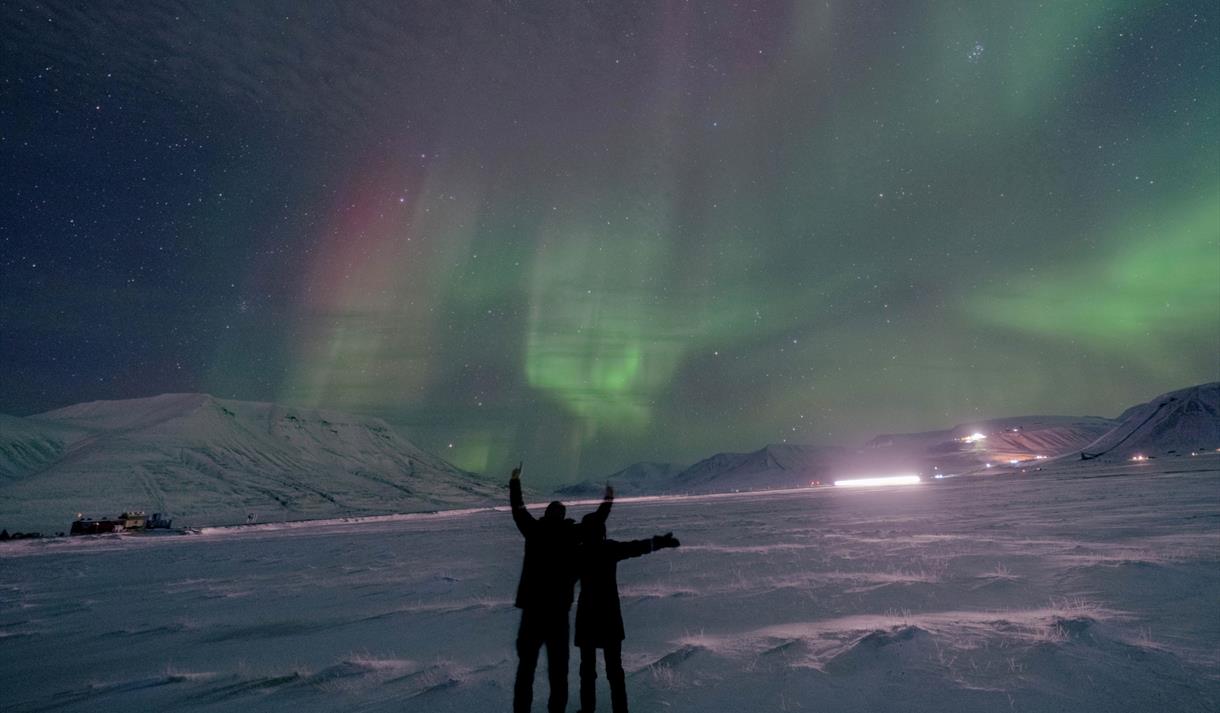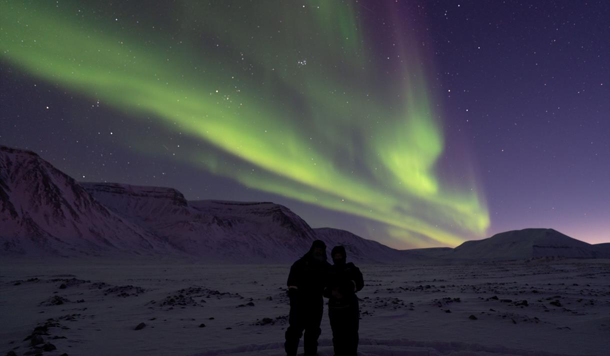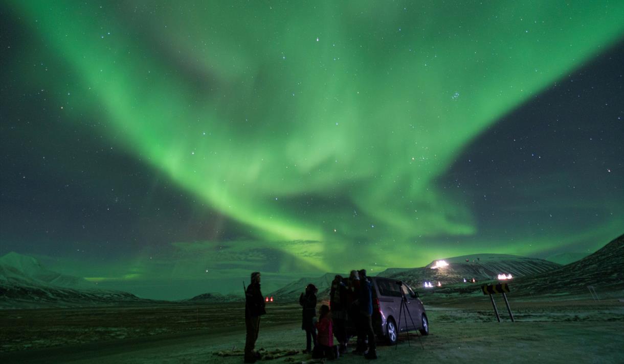 Step into the Arctic night on a guided Northern Lights adventure by car, starting from Longyearbyen and heading into the dark valleys of Adventdalen and beyond.