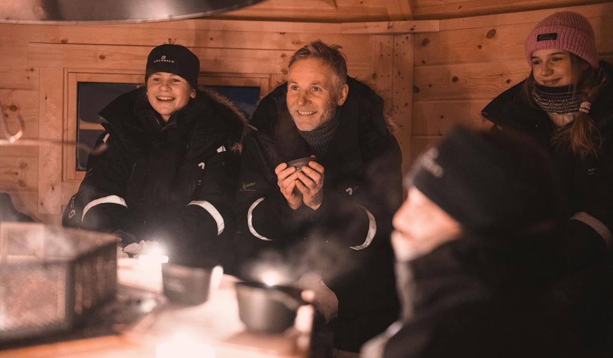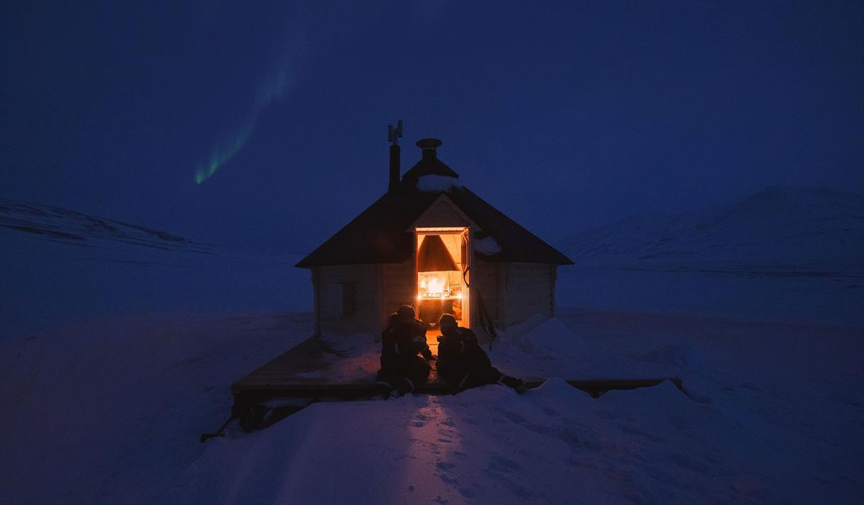 The quest for the Northern Lights becomes unique with our warm cabin, Advent Lodge, free from engine noise – an experience powered by electric energy.