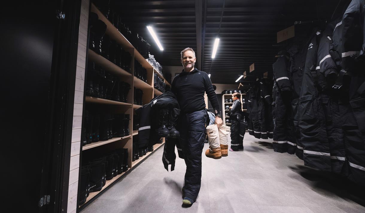 - Winter suit, boots, gloves, helmet, goggles, and balaclava