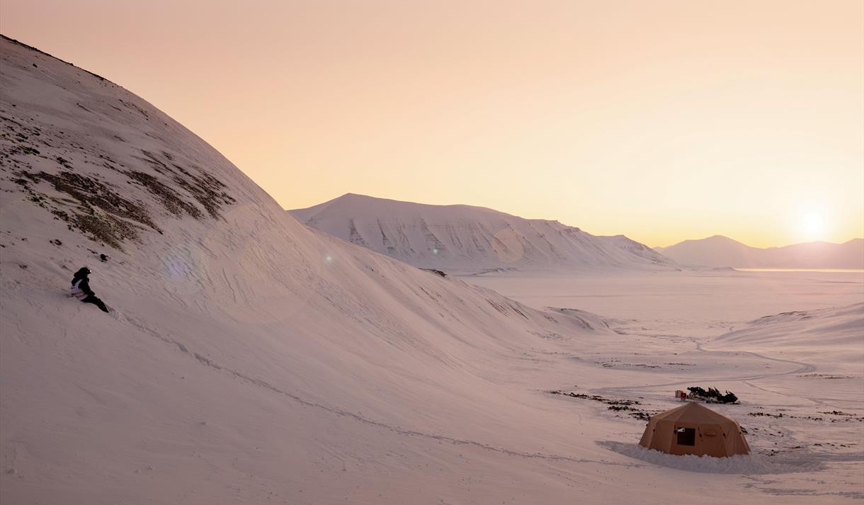 Our journey will go through the snow covered canyons towards the massive valley of Reindalen. Here we have prepared a wilderness camp for a bonfire and warm lunch. On our way we will be passing high glaciers and amazing nature like nowhere else in the world. We will head towards the large Van Mijenfjord, where we often find wildlife.
