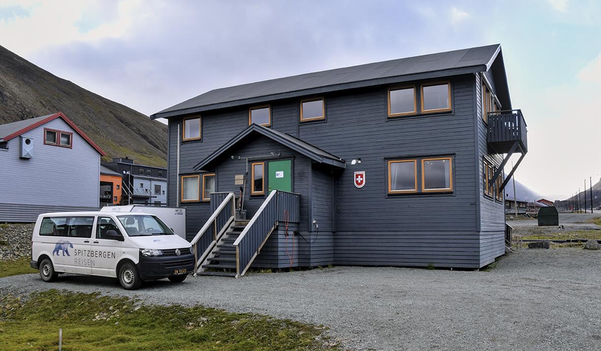 • Spitzbergen Reisen's office seen from the outside, with a car parked in front of it