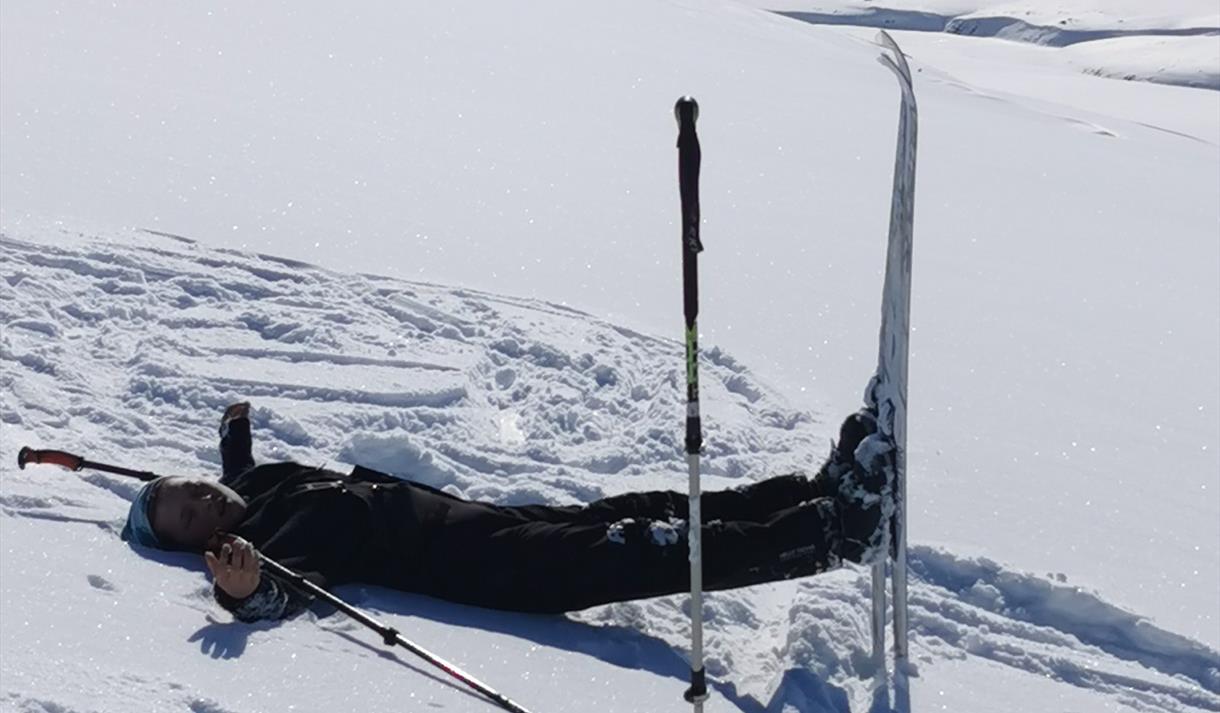 The area we are skiing in is band for motorized traffic and is surrounded by glaciers and beautiful mountain peaks as well as wide valleys – no cell phone coverage in this remote area!