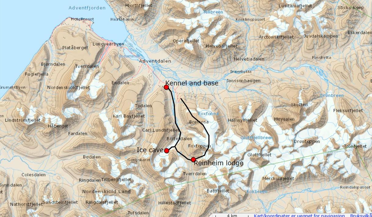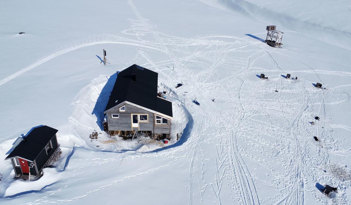 We skie with dogs and pulkas to our idyllic cabin: "Reinheim", which is in Tverrdalen - only 12 km from our dog kennel and base in Bolterdalen, approx. 10 km outside Longyearbyen.